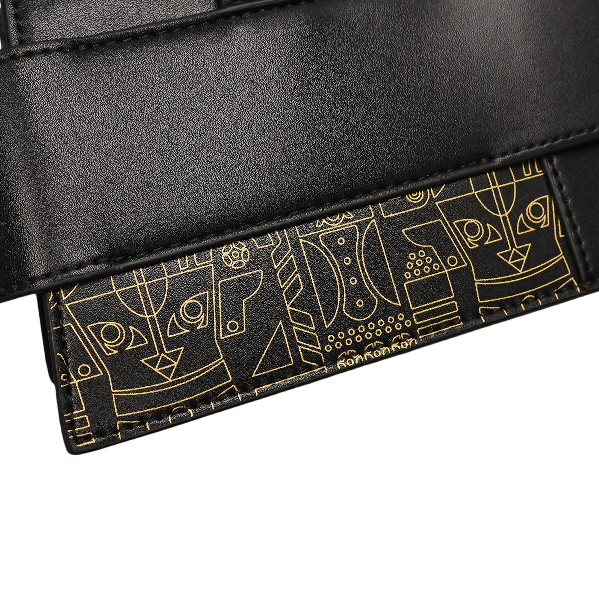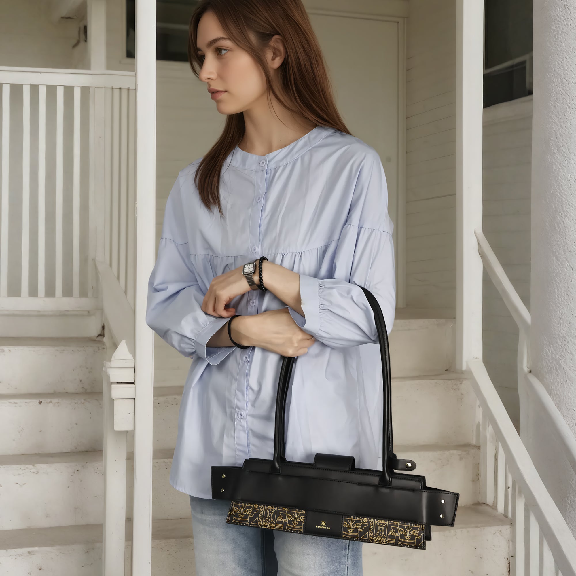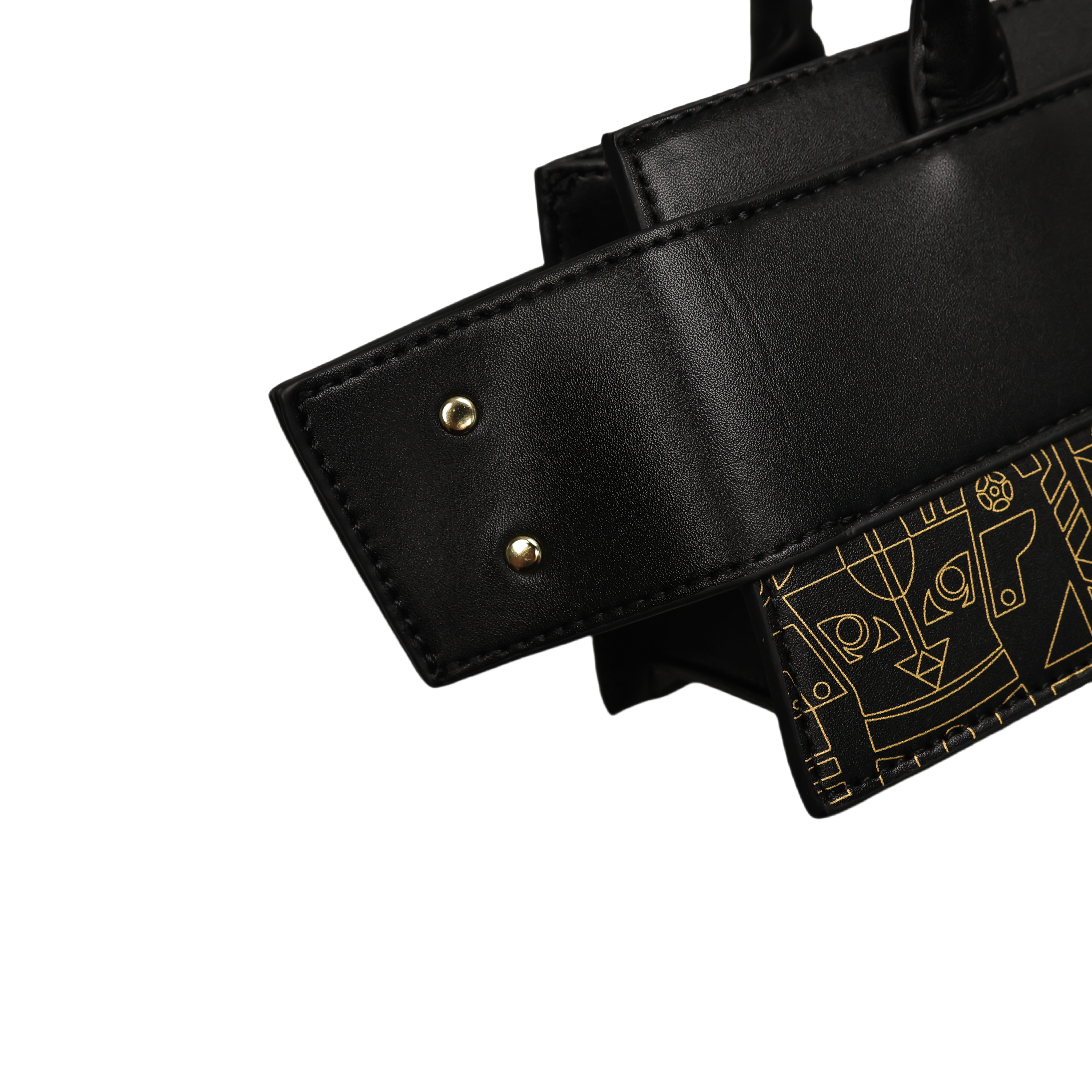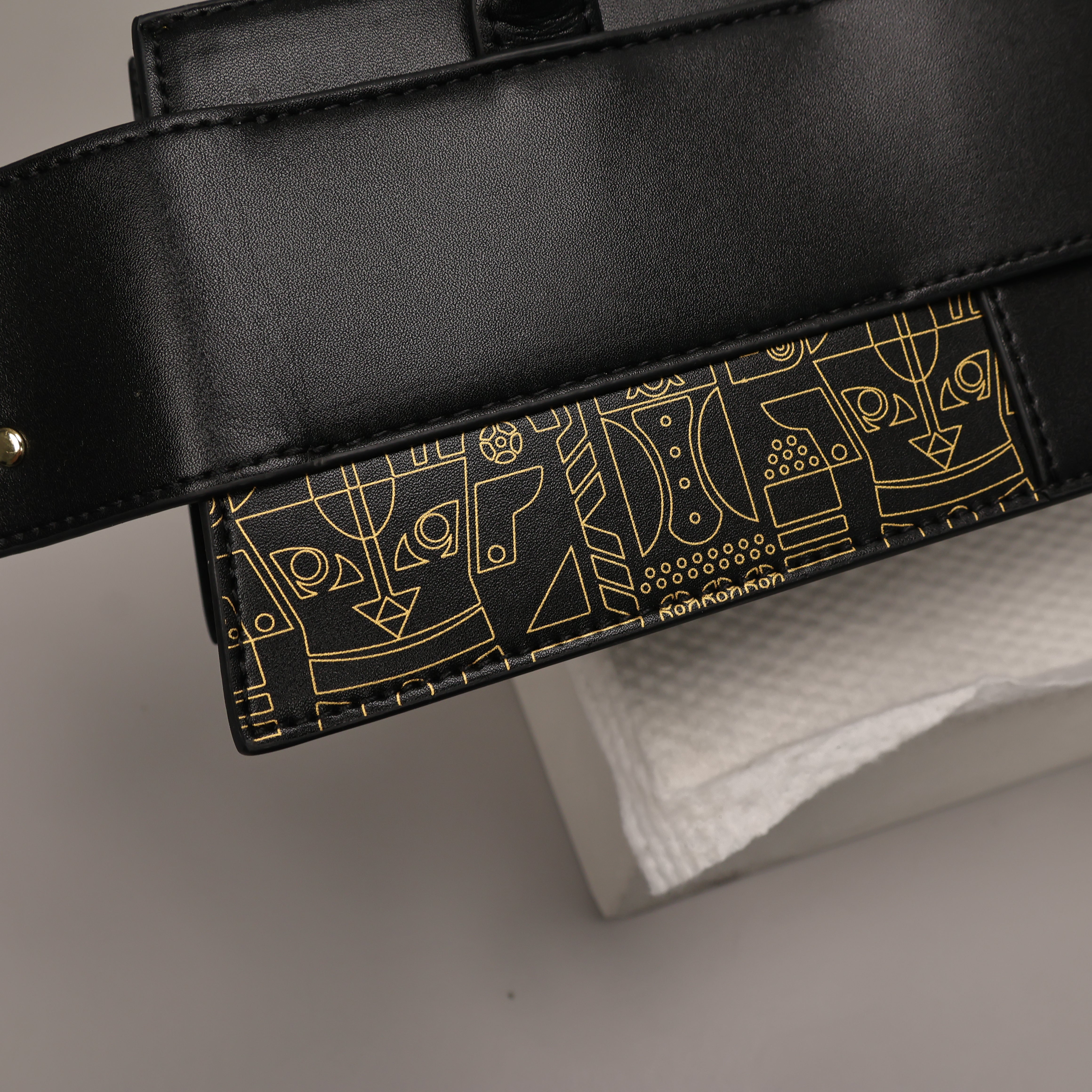 Inspired by the mysterious Sanxingdui bronze "vertical eye mask," this Sanxingdui underarm bag features a vibrant gold embossed pattern that vividly captures the ancient Shu people's cosmological perspective. Crafted from durable, waterproof microfiber leather, it's ideal for urban adventures. Cruelty-free and eco-friendly, it blends style and approachability. Its sophisticated black design with gold patterning creates a modern silhouette. Join this global cultural craze and embrace history and fashion!