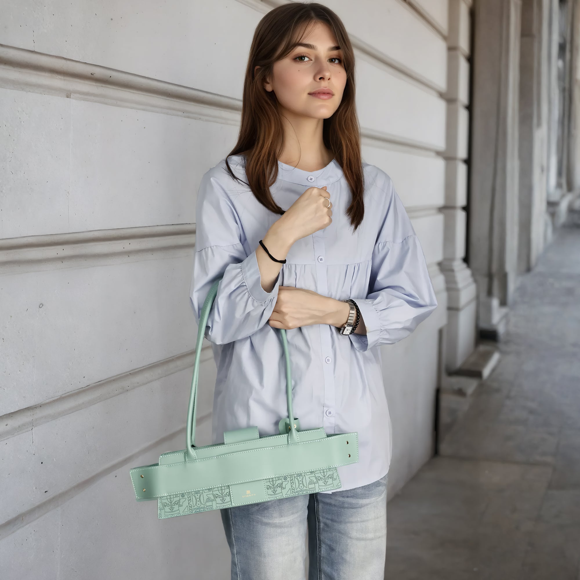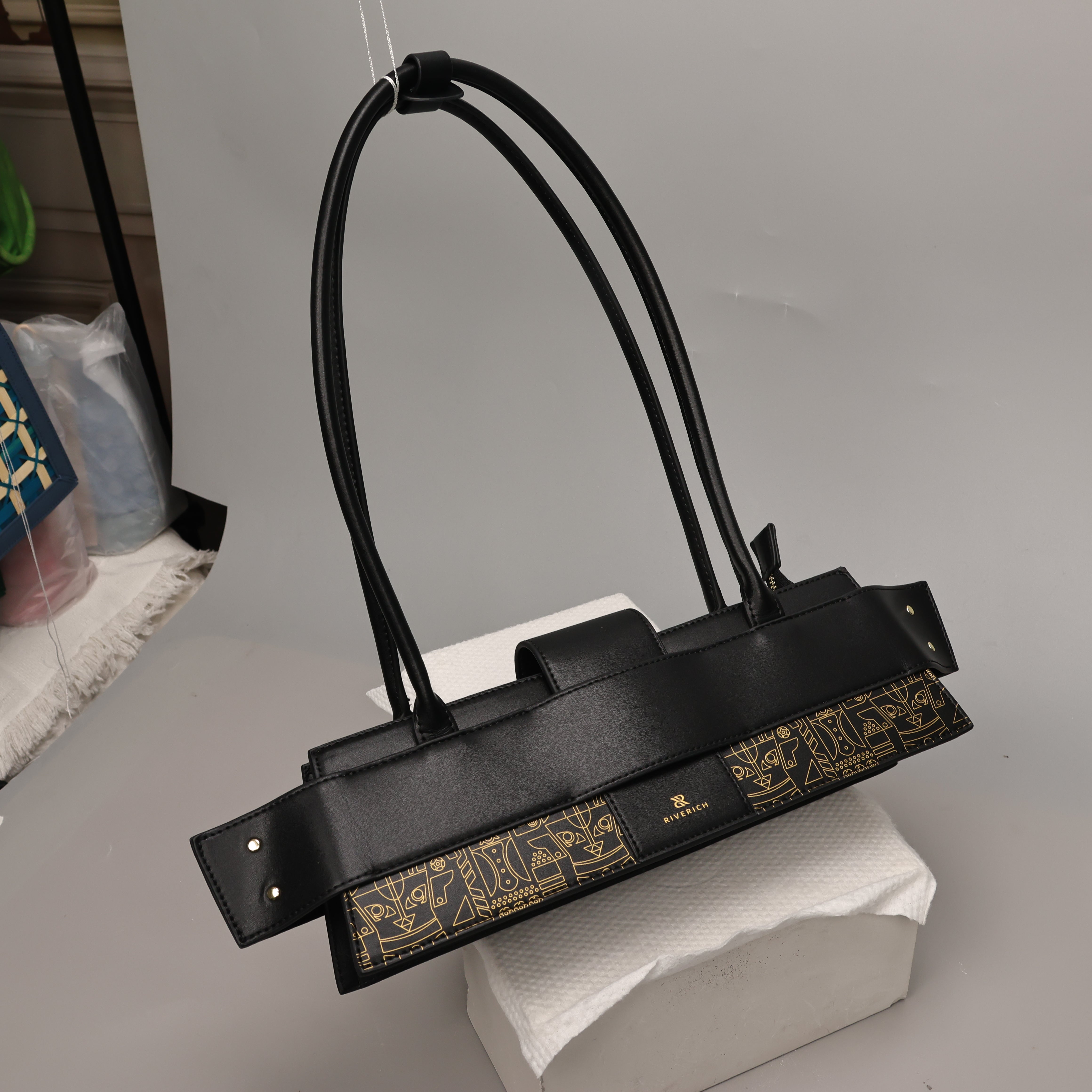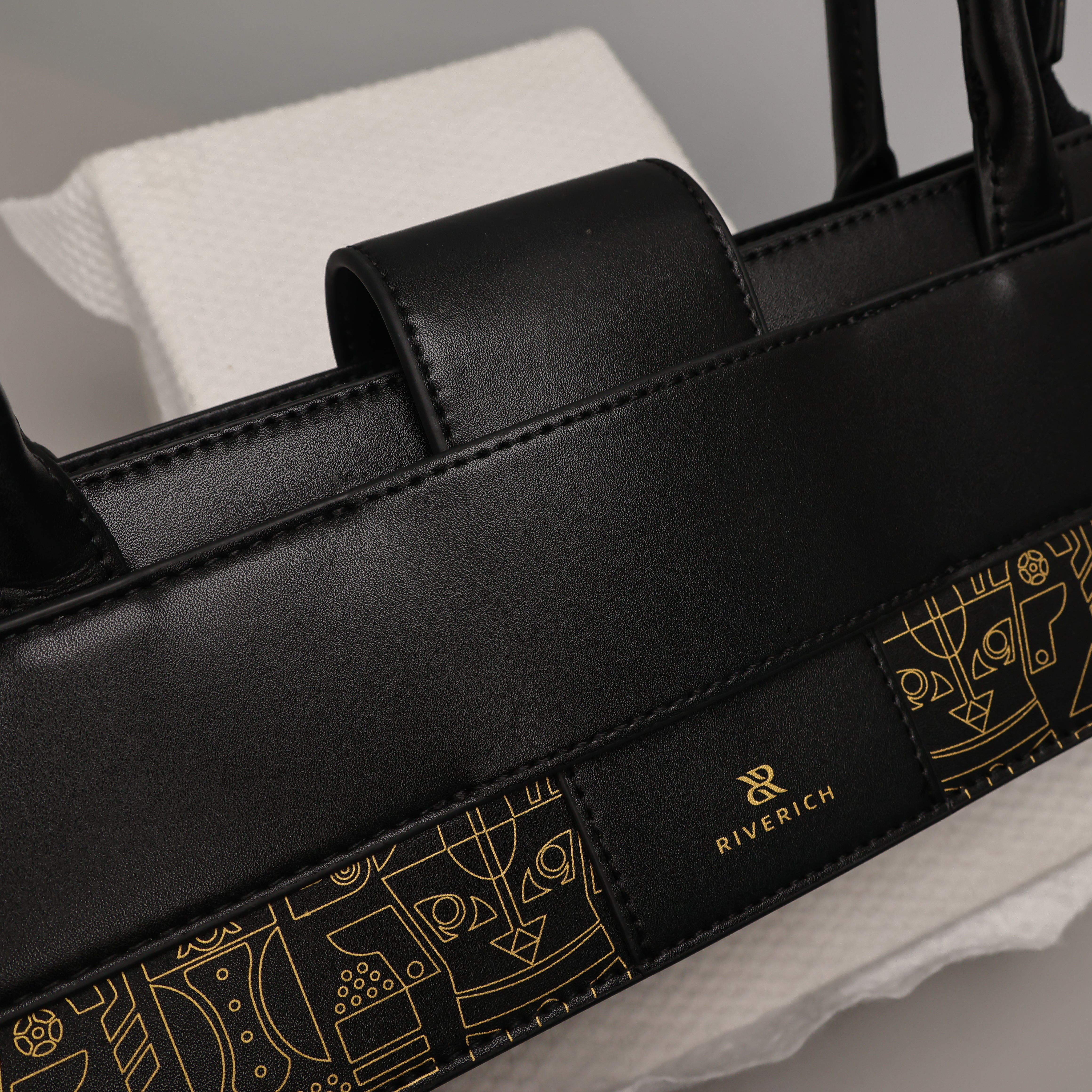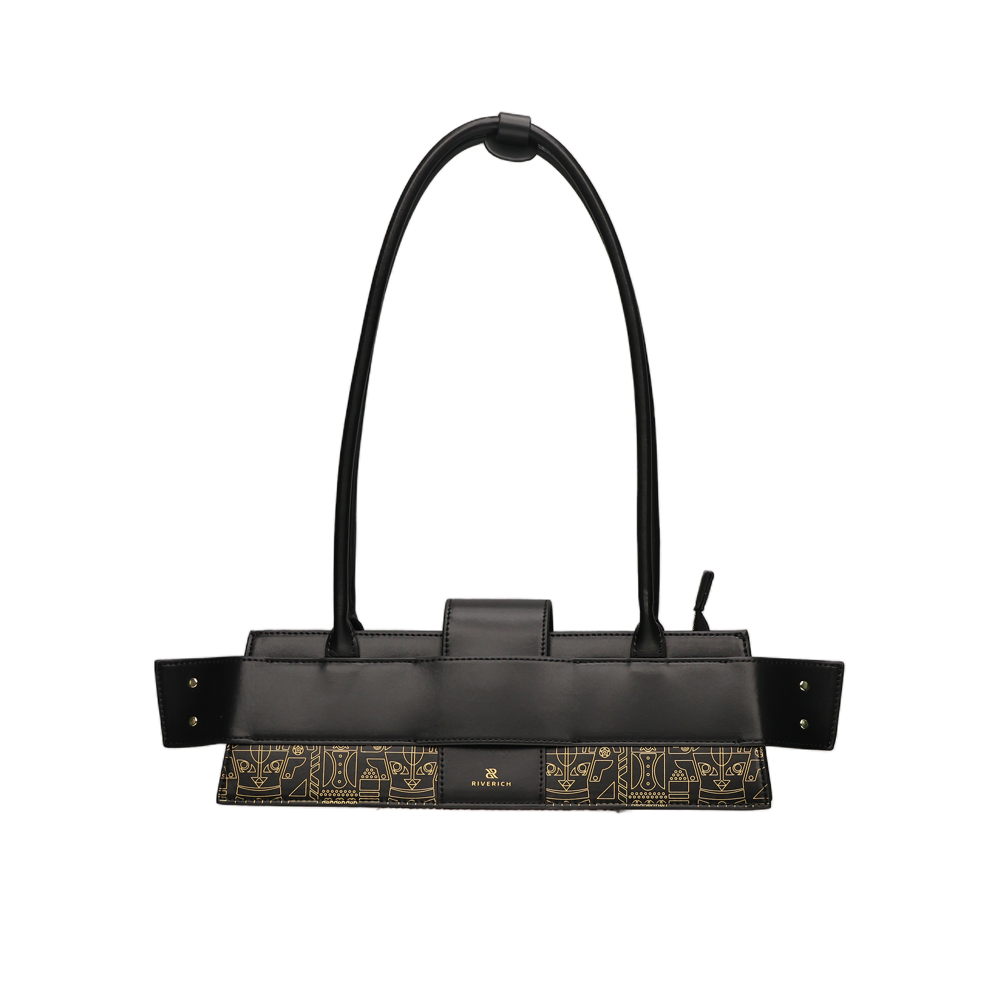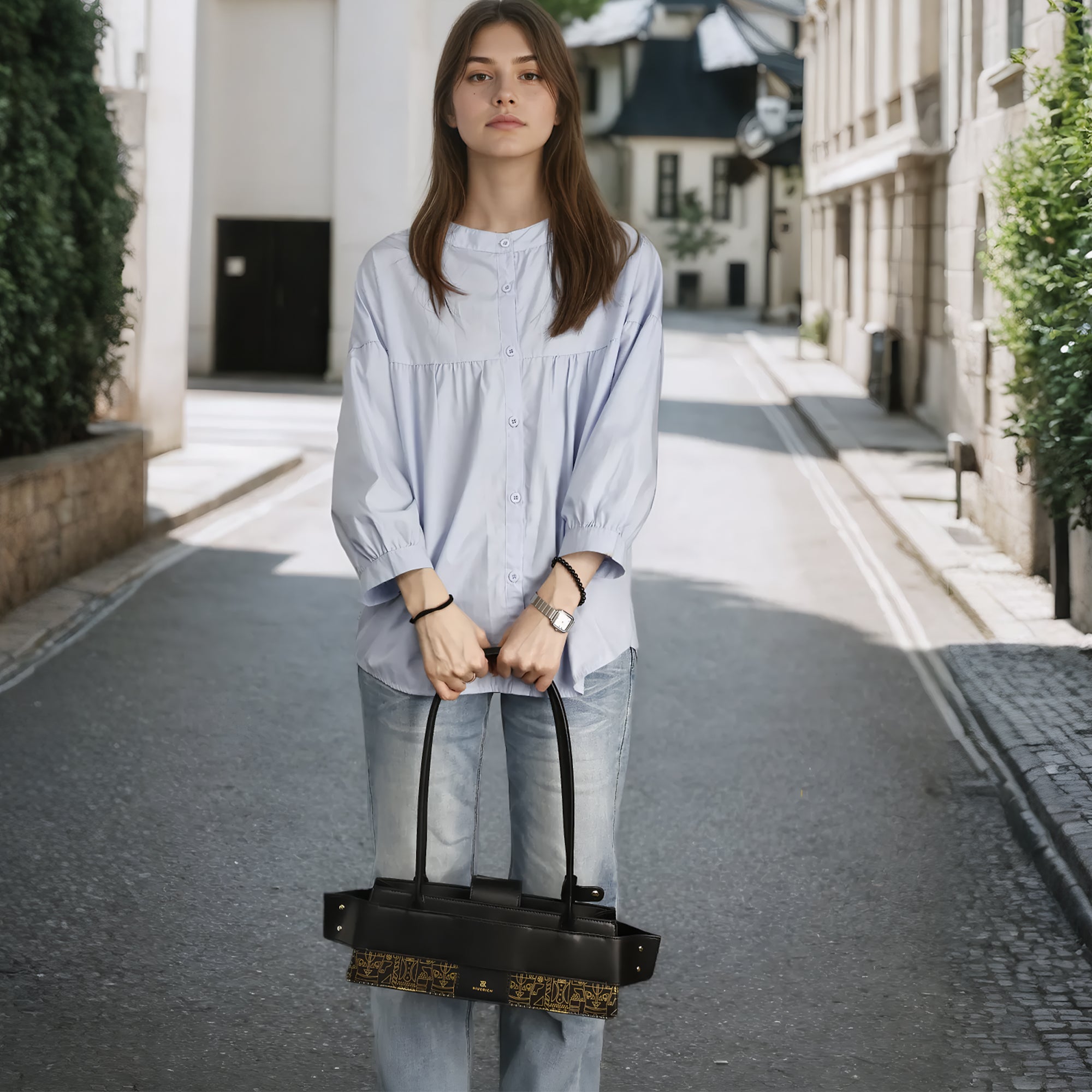 Inspired by the mysterious Sanxingdui bronze "vertical eye mask," this Sanxingdui underarm bag features a vibrant gold embossed pattern that vividly captures the ancient Shu people's cosmological perspective. Crafted from durable, waterproof microfiber leather, it's ideal for urban adventures. Cruelty-free and eco-friendly, it blends style and approachability. Its sophisticated black design with gold patterning creates a modern silhouette. Join this global cultural craze and embrace history and fashion!